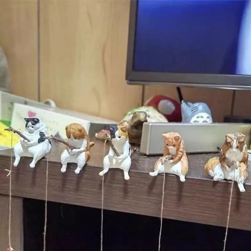 Fish Tank Fishing Cat Hanging Creative Landscape Office Ornaments Fishing Fun Mini Decorative Micro-Landscape